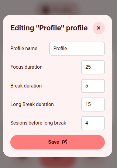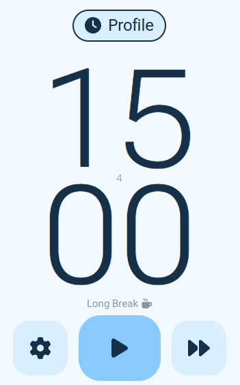 Pomo-san A simple and practice pomodoro to improve your productivity This app is developed in ReactJs with the PWA feature Modes Focus - Break - Long break Customize Add and edit profiles with different time configuration