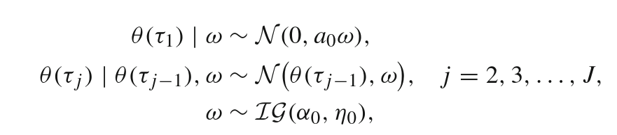 where${\tau_j}$ 's are jump points, $J$ is the number of jumps, and $a_0$ is a hyperparameter. See Section 3 of Wang et al., (2013) for details.