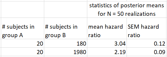 Hello, First of all, thank you for the dynsurv package. I am not having any trouble using the code, which is wonderful! However, I would like to know what the prior density on the coefficients is that corresponds to the "HAR1" selection (as exemplified in the code below from the dynsurv documentation). That is, I don't know right now what "HAR1" corresponds to in terms of a known density function. My current best guess from reading Wang et al. BMC Medical Research Methodology (2016) is that the prior in this case is a Gaussian with mean 0 and variance given by a scaled (by a variable named "ao" in that paper) inverse gamma with the specified shape and scale parameters. Is that right? If so, is "a0" specified/hard-coded somewhere, or does it also have a prior? Fit dynamic coefficient model with dynamic hazards (in log scales)fit3 <- bayesCox(myformula, mydata, model = "Dynamic", Many thanks, |
