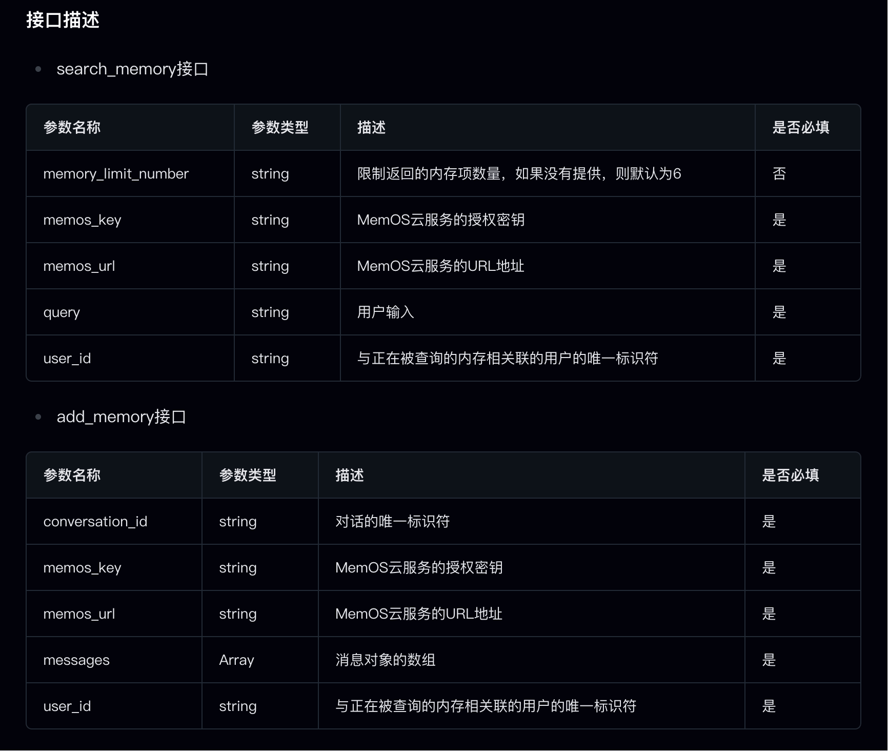 For specific instructions on how to use the tool, you can refer to the MemOS API Reference。