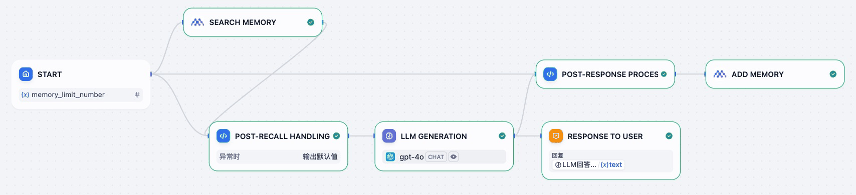 - Build Complex Memory Logic: Link the "Add" and "Search" tools with other nodes in Dify to create complex logic.