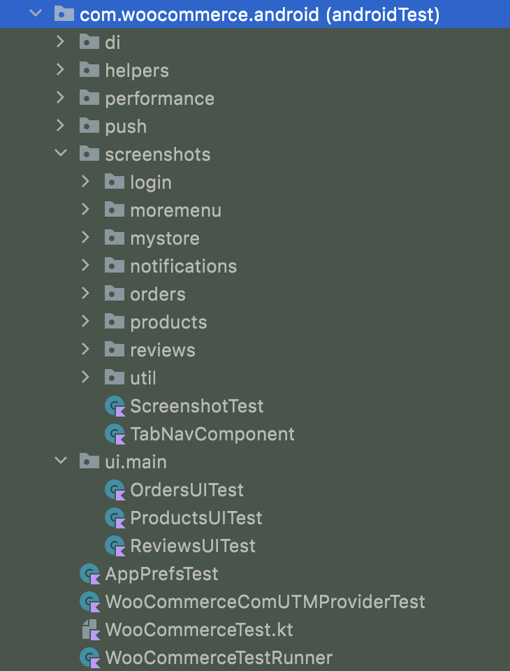 screenshotsfolder, I guess it was because the first UI test that was created was the screenshots test, it was all grouped under that folder. Now that we are starting to write more UI tests it doesn't make much sense to keep them all in the screenshot folder anymore.The ScreenshotTest is also still excluded from the test run in this PR, it seems to be broken (last change was in this PR) but we should look into fixing that soon.