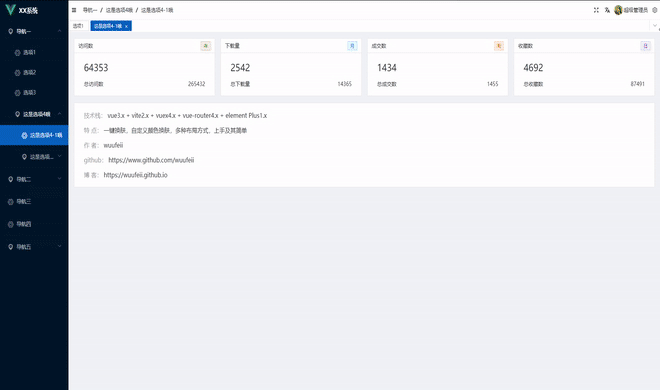 - 在线预览地址: [vue3-admin-vite]
