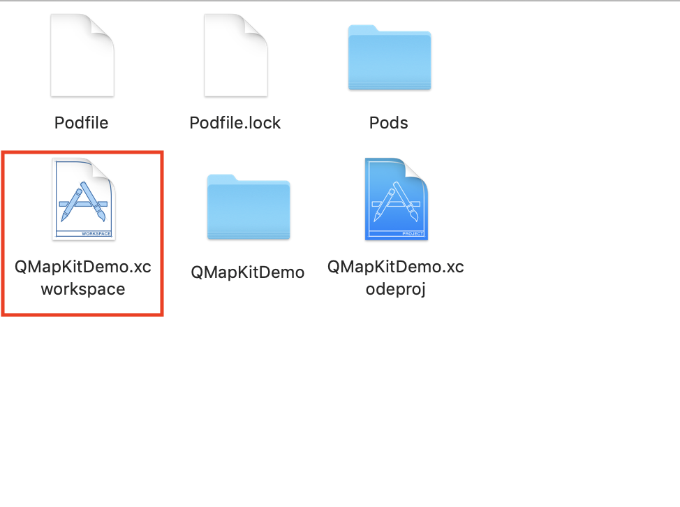 命令执行成功后,会生成 .xcworkspace 文件,打开.xcworkspace 文件以启动工程(注意:此时不能同时开启.xcodeproj文件,示例: