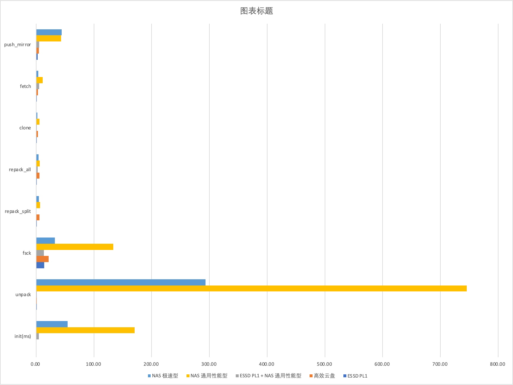 | ESSD PL1 + NAS 通用性能型 | 42.6ms | 15.7s | 18.0s | 79.1s | 66.2s | 53.1s | 63.9s | 5.3s |
