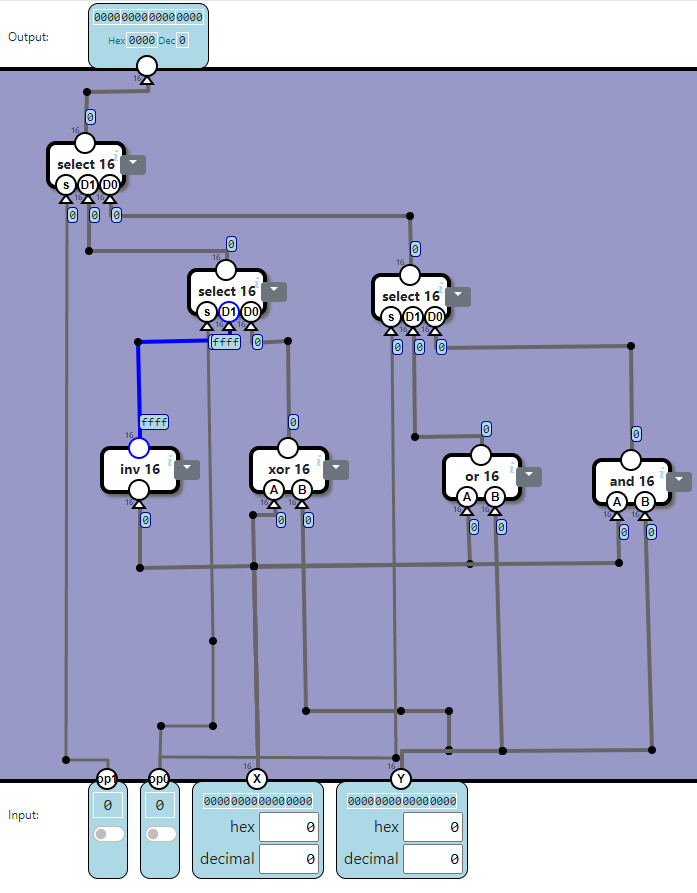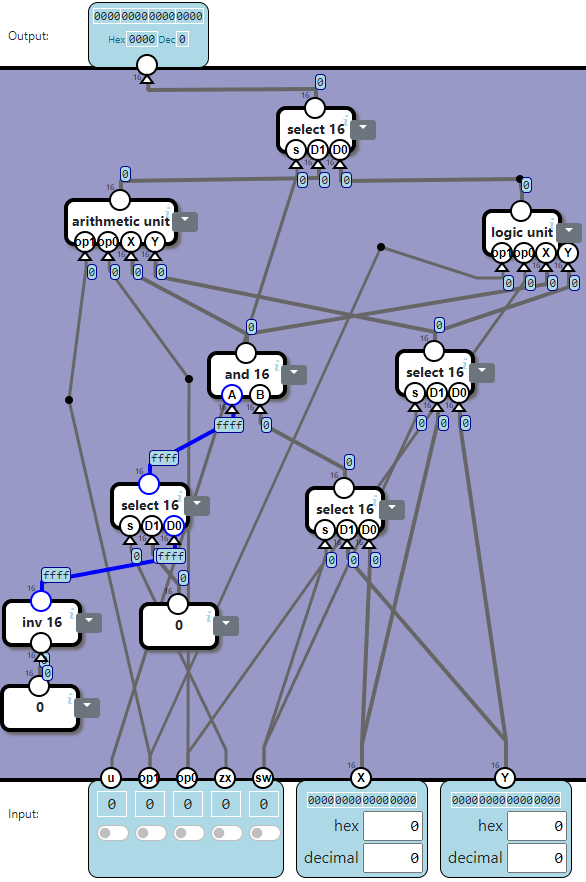 u, op1, op0, zx, sw: ALU flag.