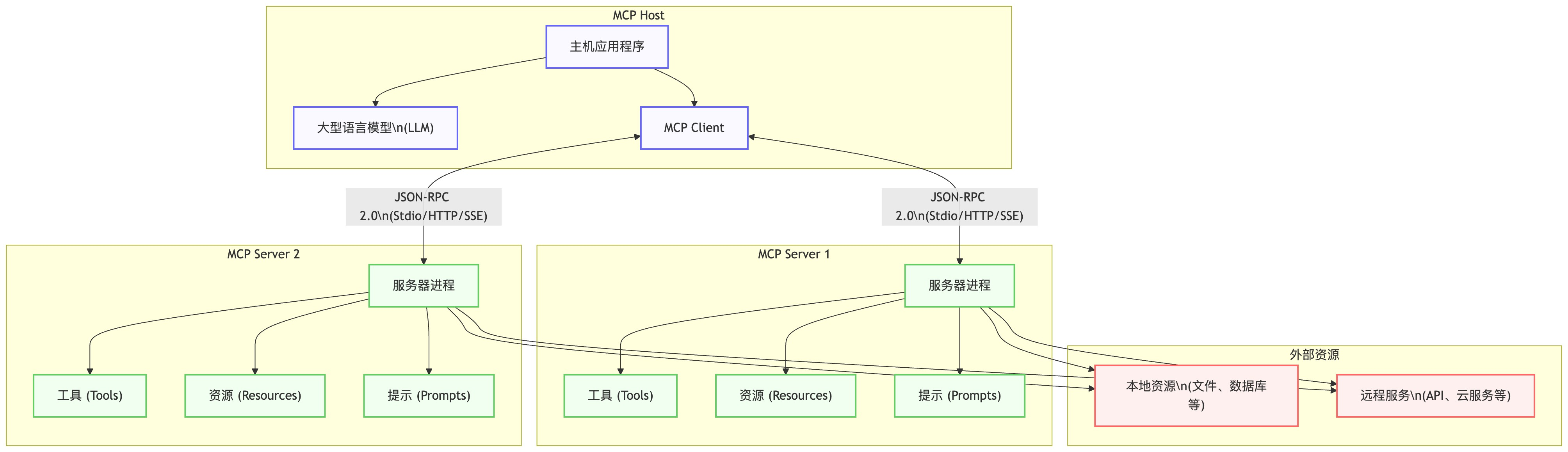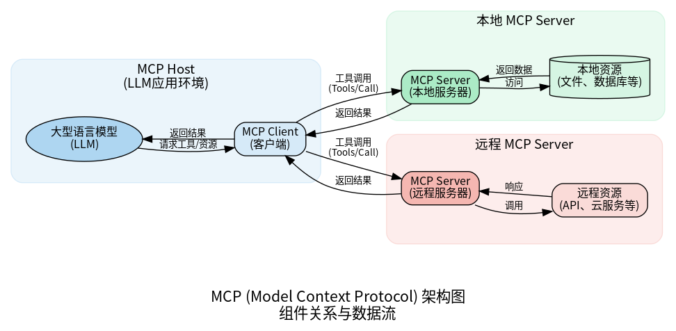 MCP Server 是轻量级节点或服务进程,通过标准化的 MCP 协议向客户端提供特定的能力。服务器可以是本地的也可以是远程的,每个服务器专注于特定任务,充当模型与实际资源之间的中介。
