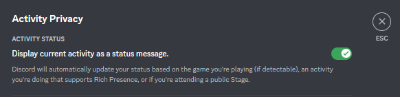 - A game activity toggle option in either the status picker or the user panel or by keybind.