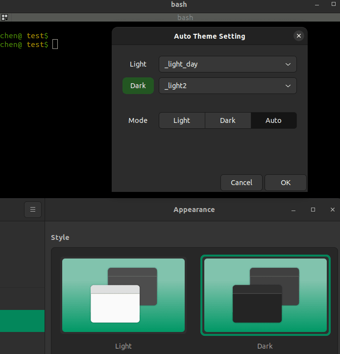 - Copy auto_theme.py to ~/.config/terminator/plugins/