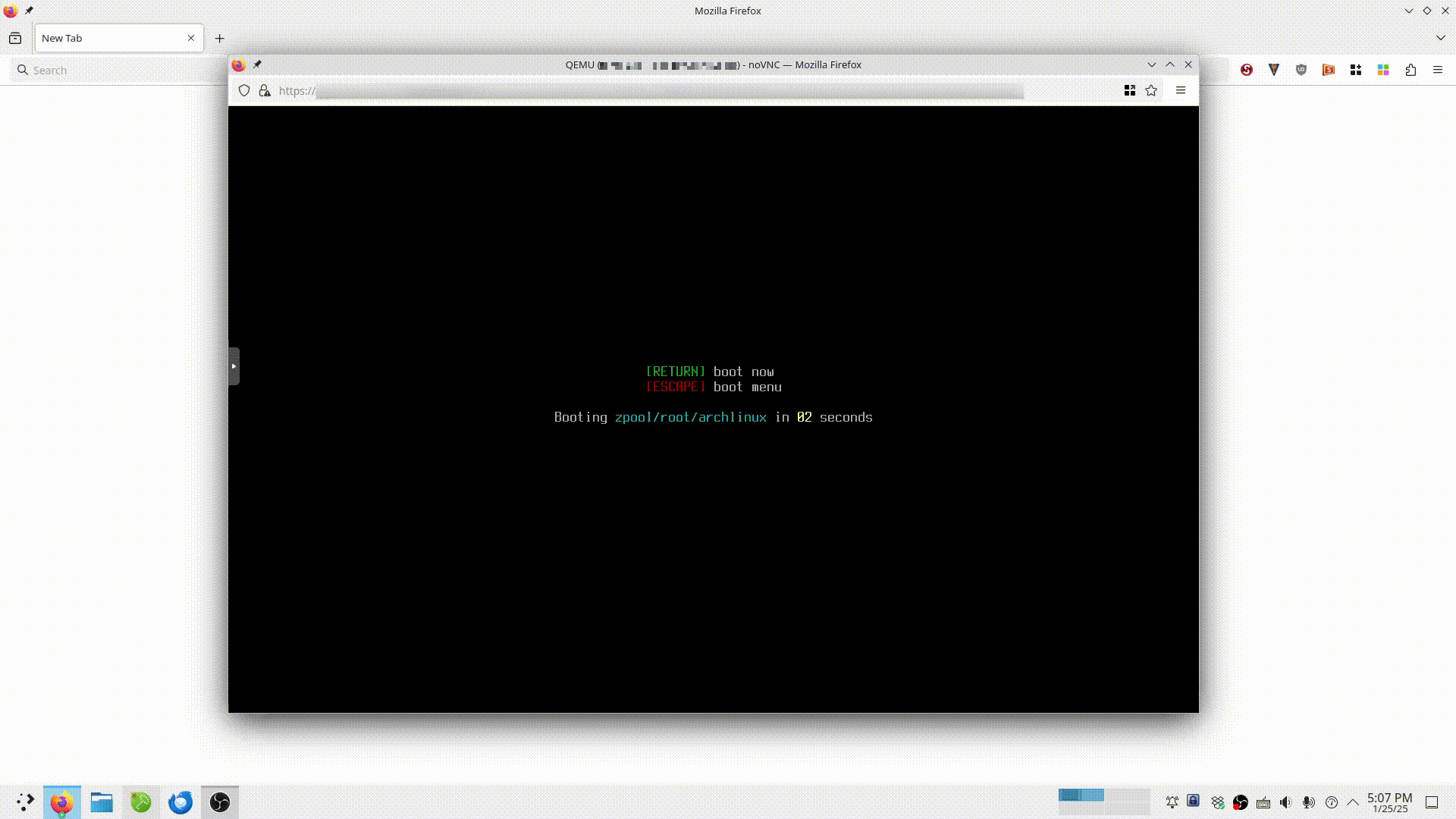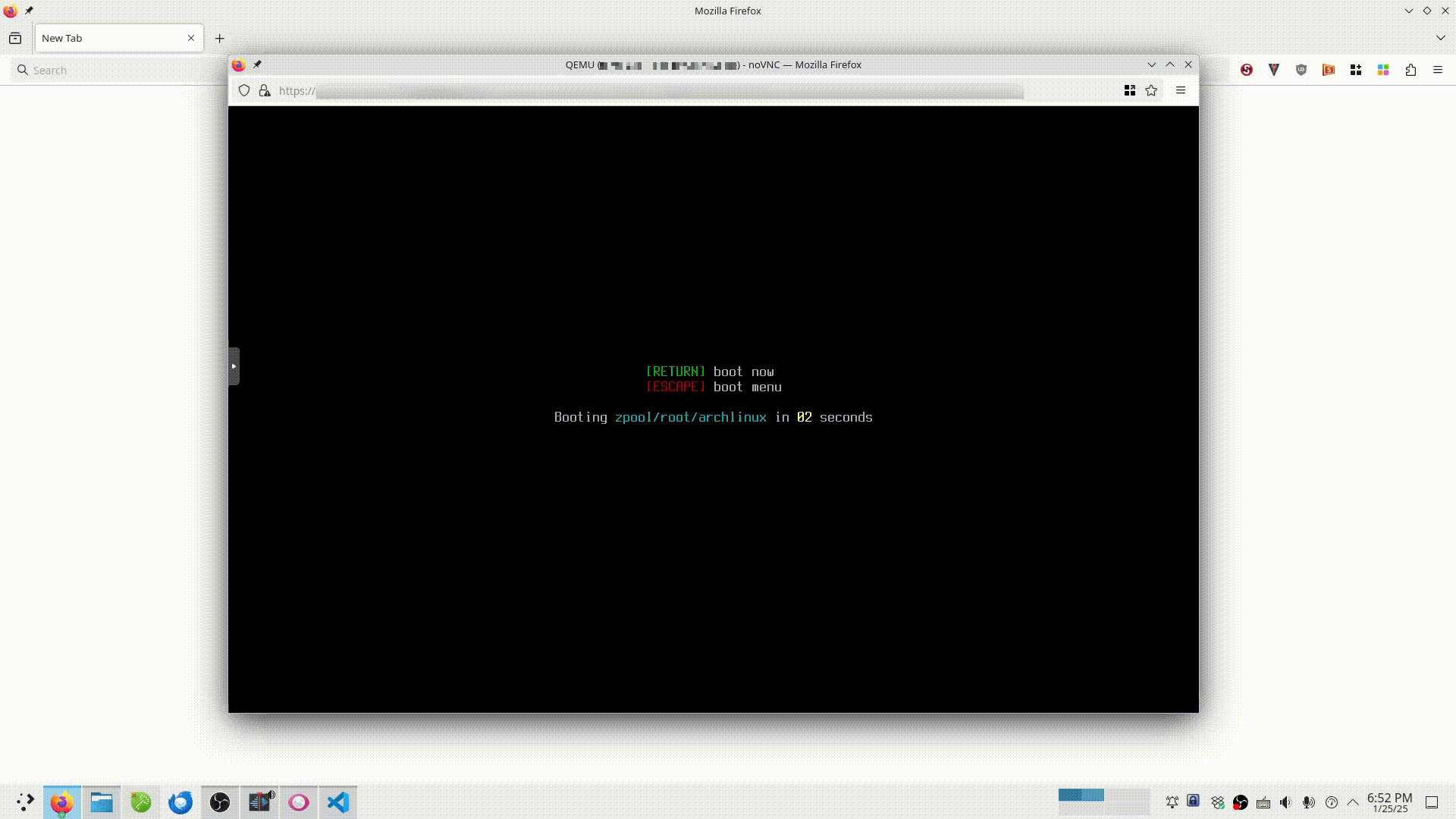 Hi! On a virtual machine on a Proxmox hypervisor where the virtual machine has root-on-ZFS with ZFSBootMenu 2.3.0 and Arch Linux I'm trying to better understand a peculiarity that apparently gets triggered by disk replacement in a zpool. After replacing the root/boot disk I see during the boot process: Meanwhile everything seems to be working fine despite this message and a 2-second delay observed during boot. This is mainly me trying to see if I'm forgetting something and trying to understand what specifically is triggering this. Here's a screen capture gif of how the VM usually boots as observed via the hypervisor's noVNC serial console emulator: This to me is normal behavior: