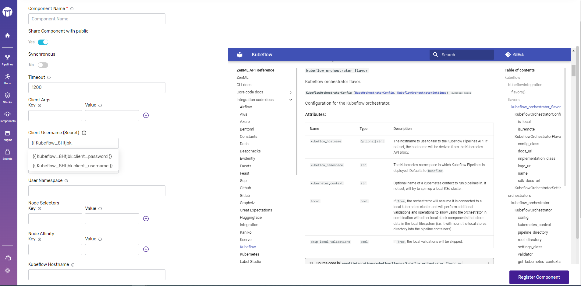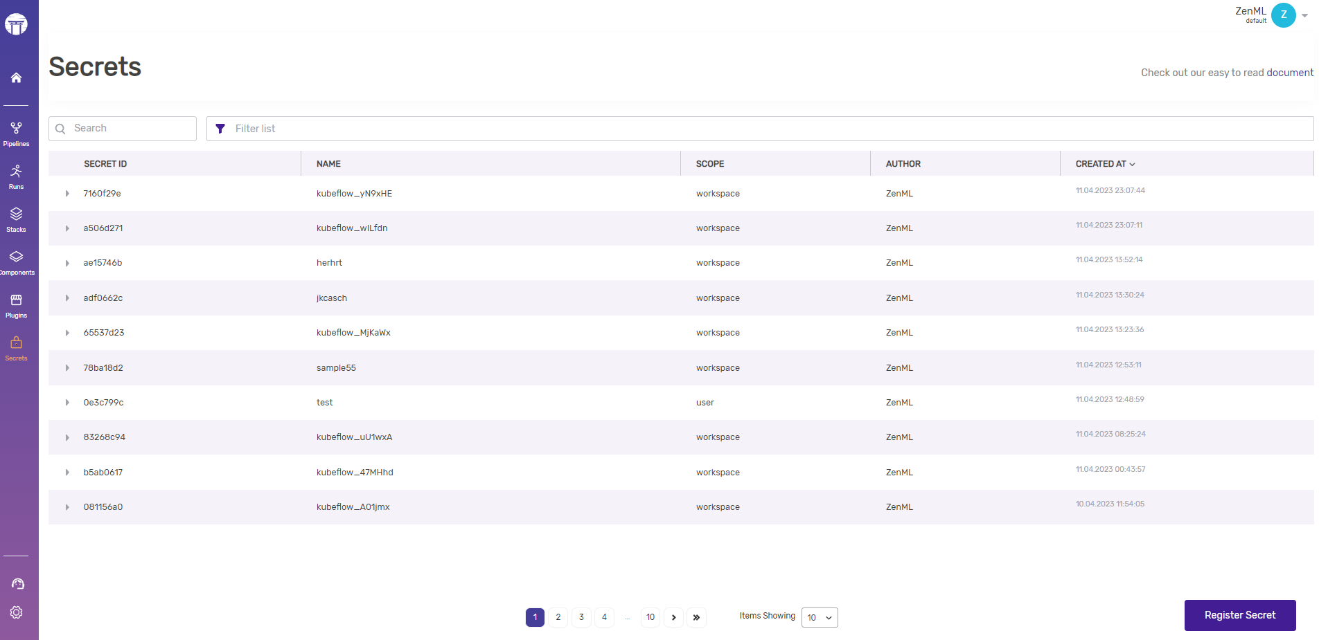 from the ZenML dashboard, as well as to reference them in the configuration of stack