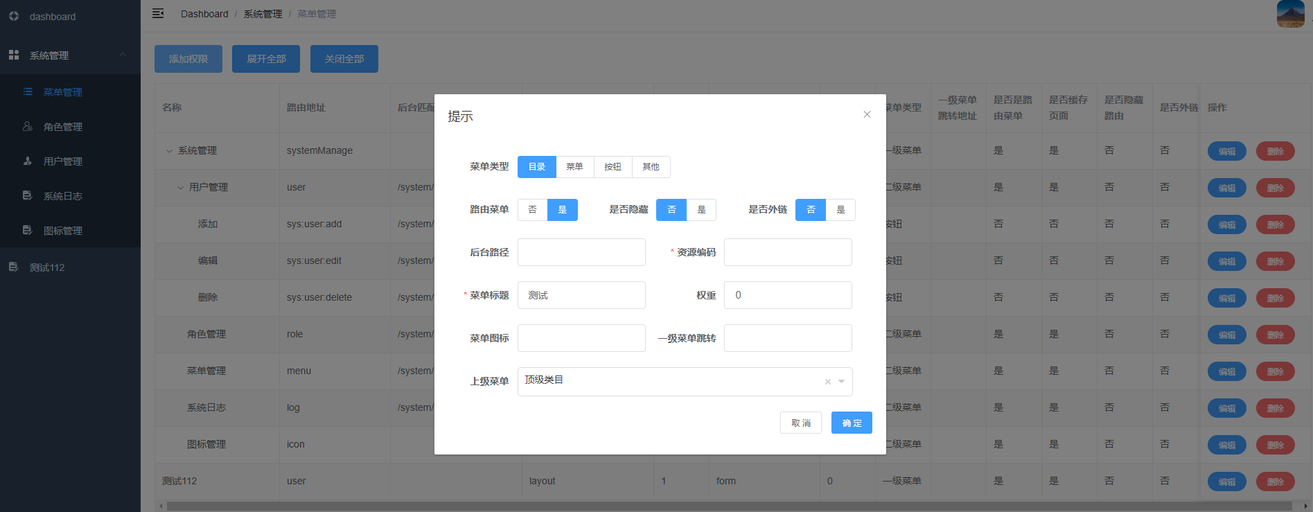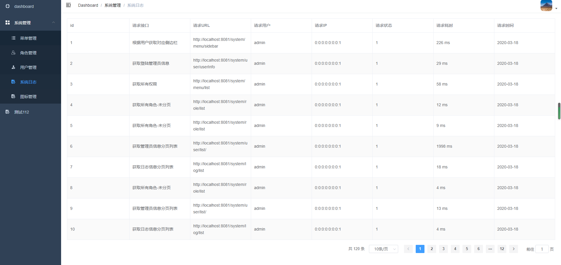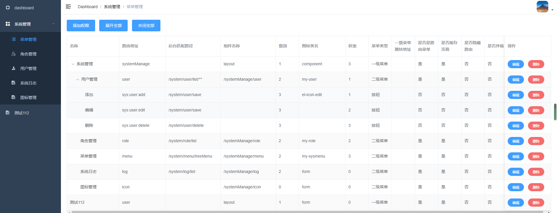 FC-Admin 一个快捷通用的管理系统 ### 一、前言 整合Spring Boot+Spring Security+JWT+Vue 完成了一套前后端分离的基础项目,这里把它开源出来分享给有需要的小伙伴们 开发环境: JDK 1.8 IDEA 2019.3 MySQL 5.7 项目使用技术栈: 前端:Vue + Axios 后端:Spring Boot 、 MyBatis 权限:Spring Security、JWT 二、页面截图 登录页 首页 菜单管理 角色管理 用户管理 系统日志 图标管理