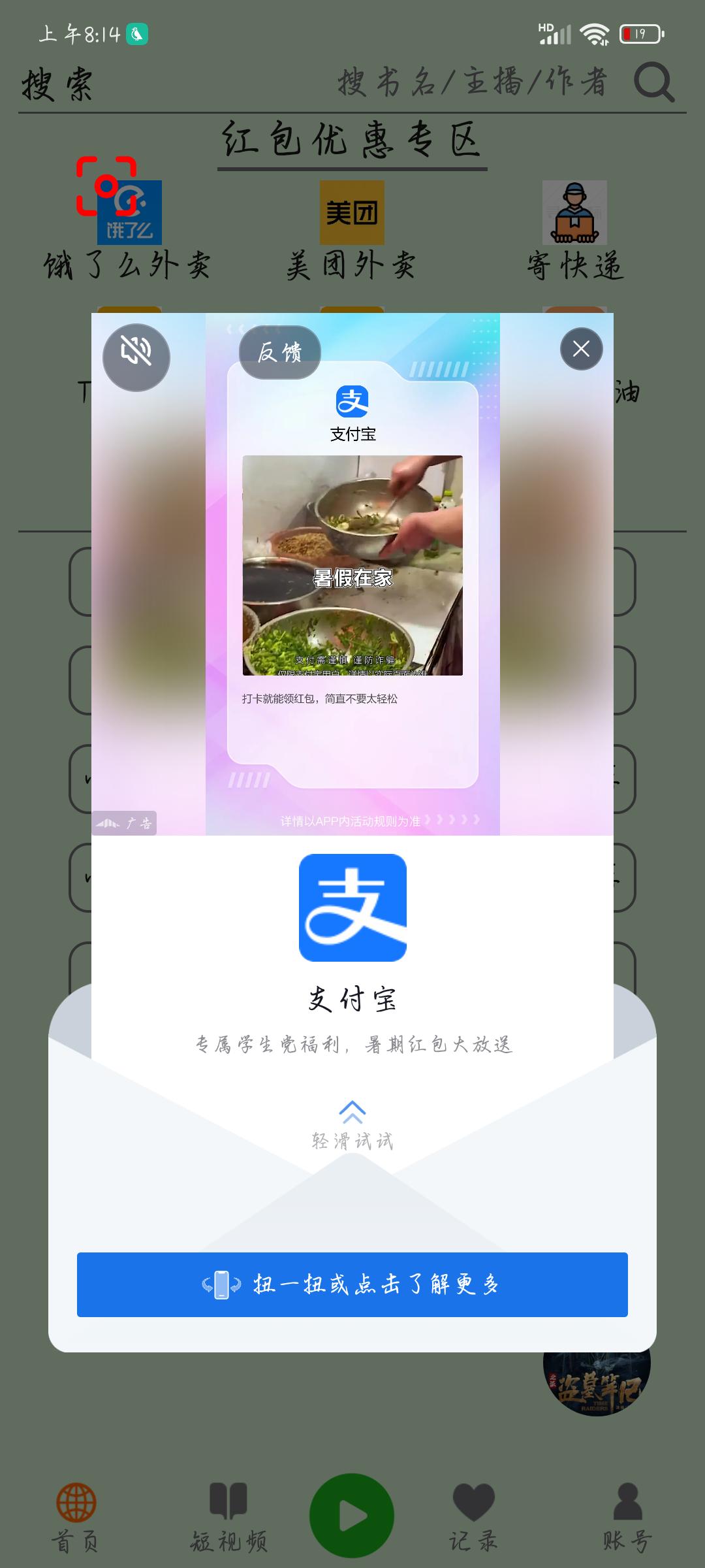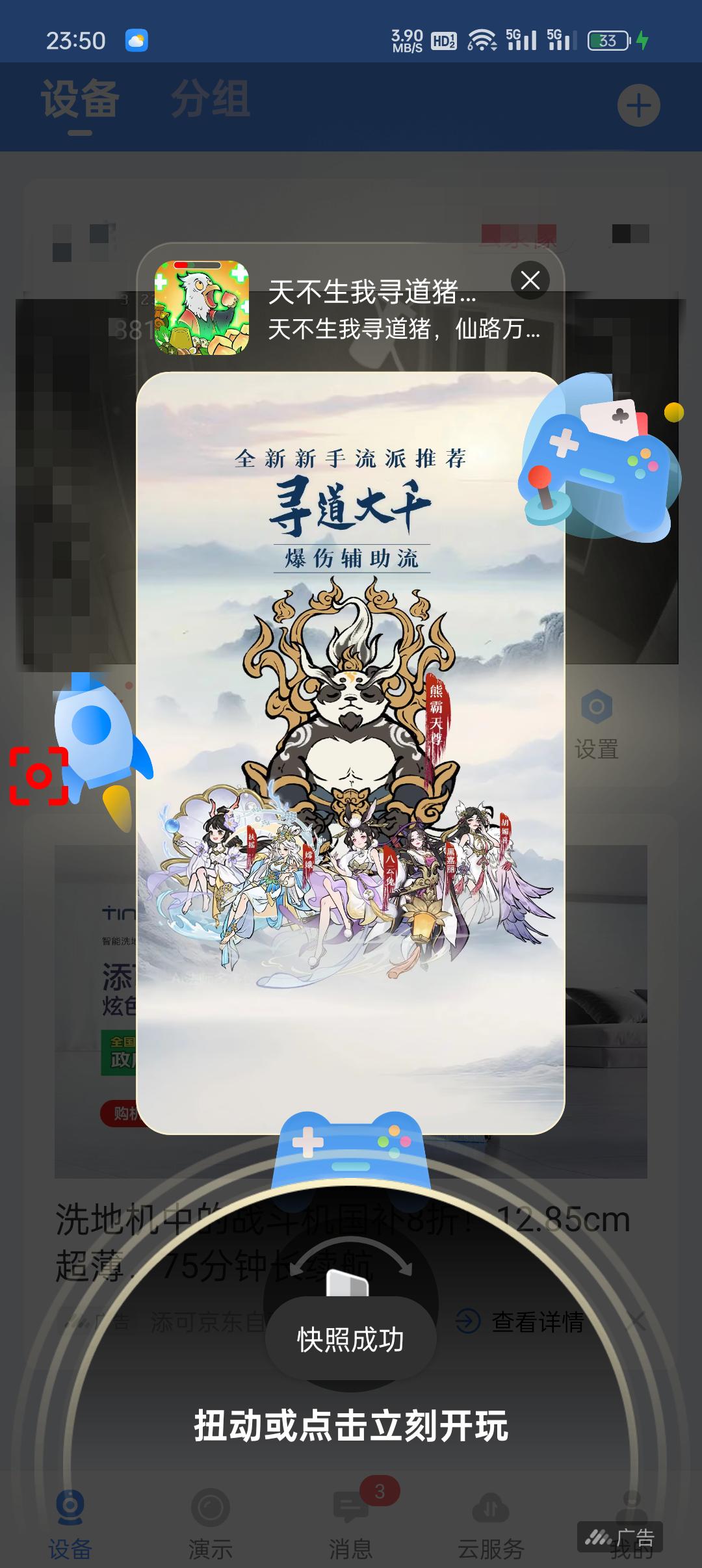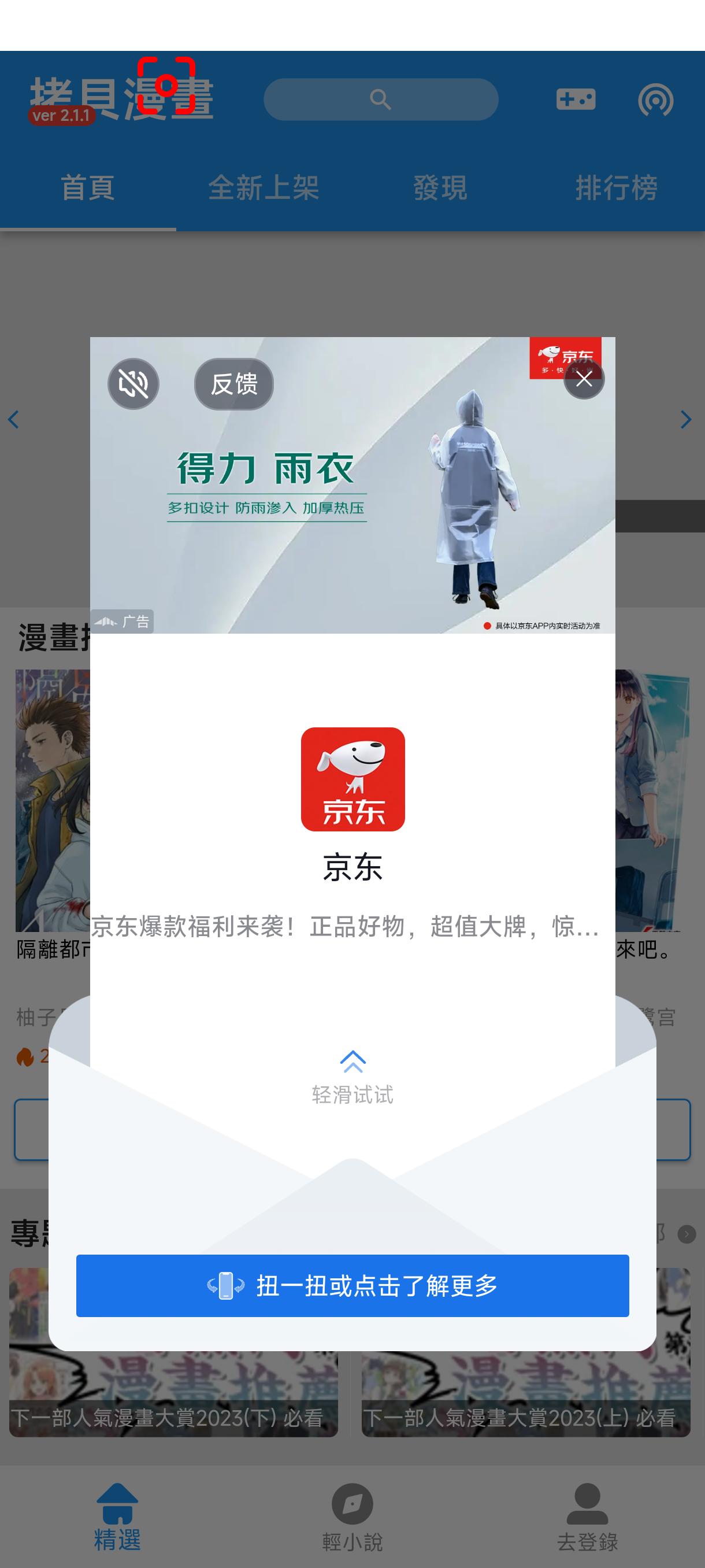 底部有 扭动或点击 字样,下方有圆形波浪
