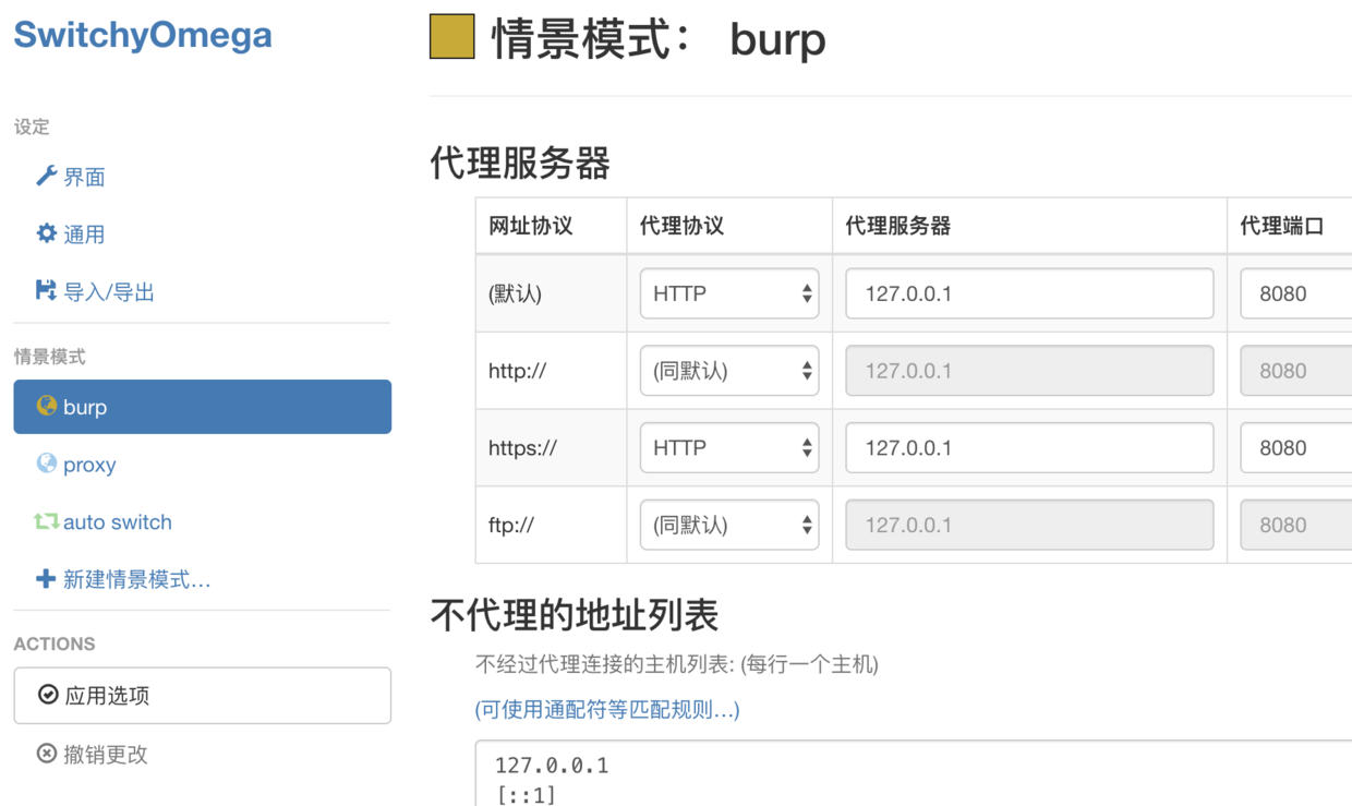 快速切换 HTTP / Socks 代理的插件,还能根据匹配地址自动切换。另一个技巧是配合 Charles、Burp Suite 这类抓包工具,这些工具使用时需要设置本地代理,可以提前设置好用时就切换。
