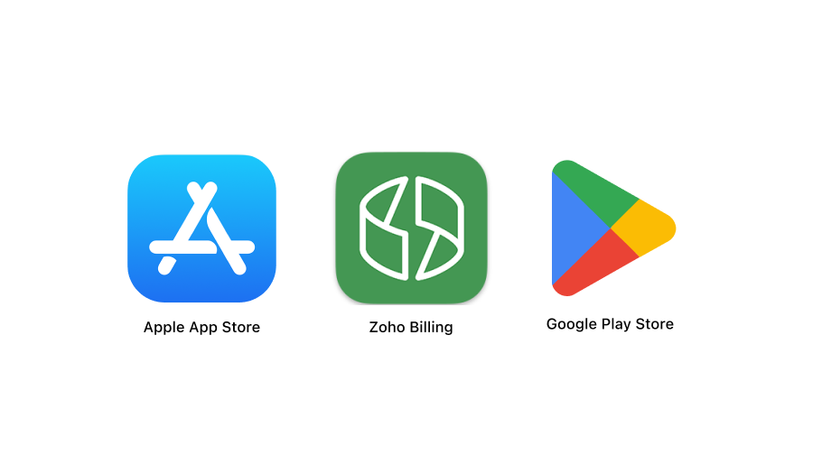 You can bundle our SDK with your Android and iOS apps. The SDK's will facilitate purchase with the respective app stores. Any new purchase or changes to existing subscription will be automatically synced to your Zoho Billing organisation and will reflect in your metrics.