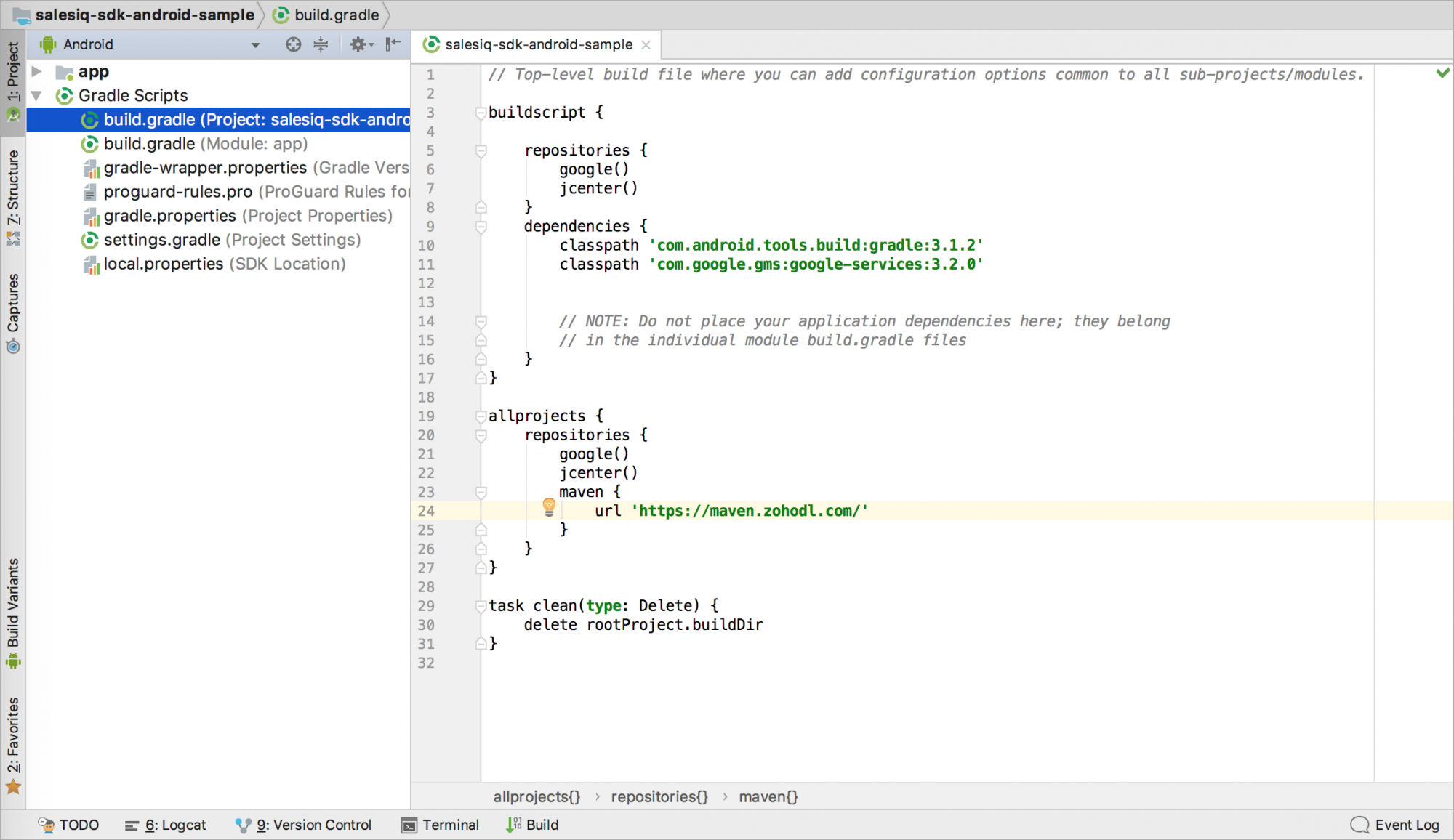 androiddirectory in Android Studio or any IDE used for Android development. Open the projectbuild.gradleorsettings.gradlefile and add the following maven repository.