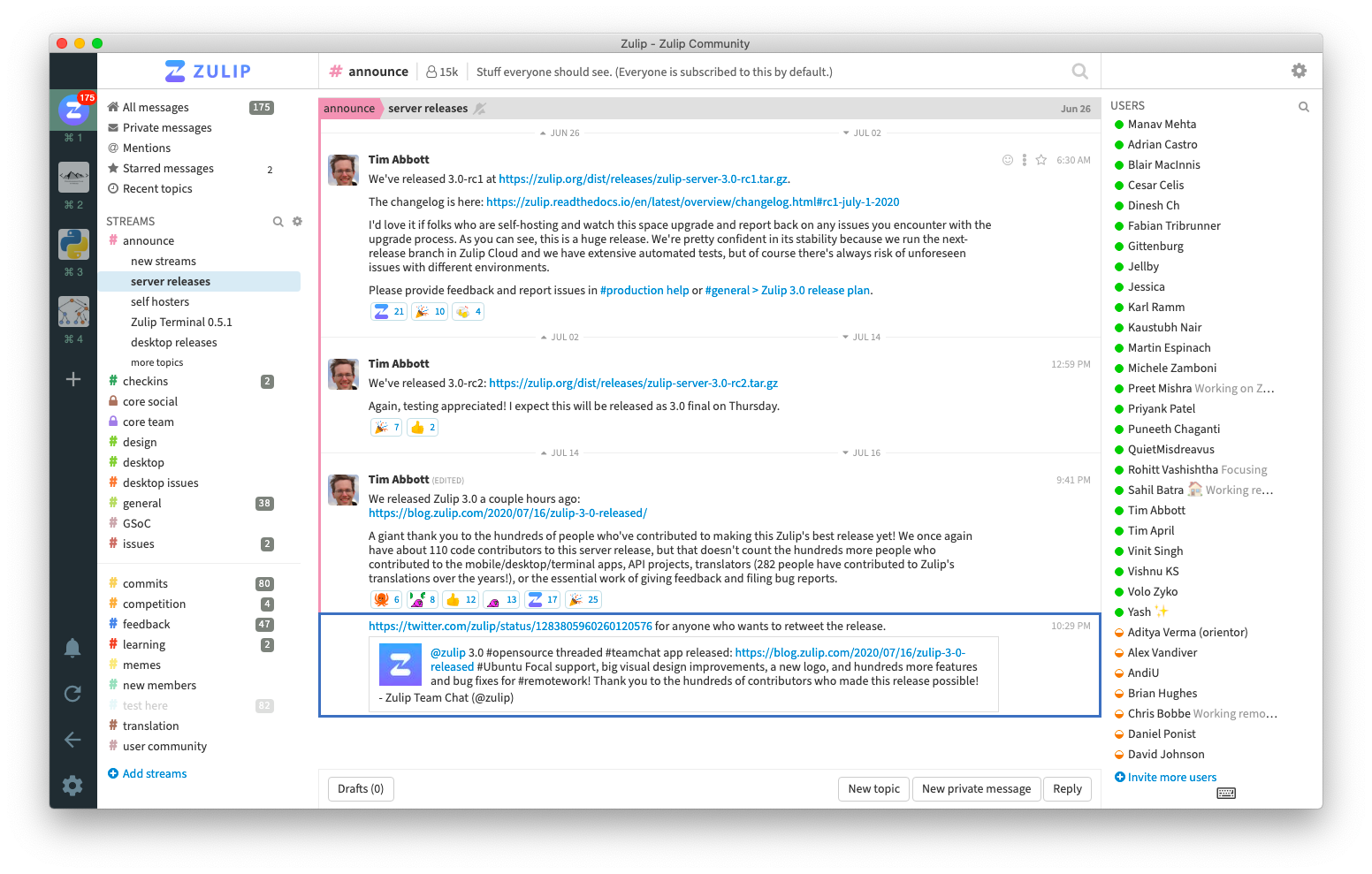 Desktop client for Zulip. Available for Mac, Linux, and Windows.