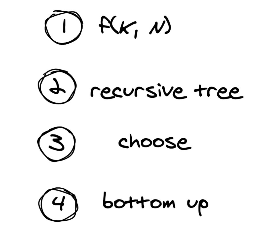 dp = [[0] * (N + 1) for _ in range(K + 1)]总结一下,上面的解题方法思路是: