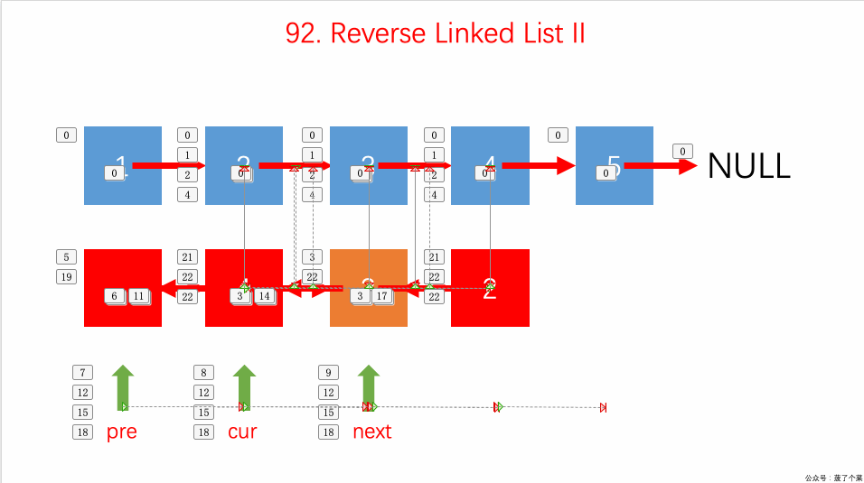 这道题和206.reverse-linked-list 有点类似,并且这道题是 206 的升级版。 让我们反转某一个区间,而不是整个链表,我们可以将 206 看作本题的特殊情况(special case)。
