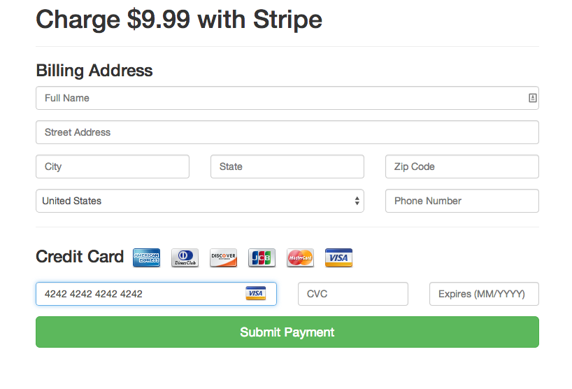 An example app for accepting stripe payments with nodejs. Includes a sample bootstrap form. This app is for educational purposes only.