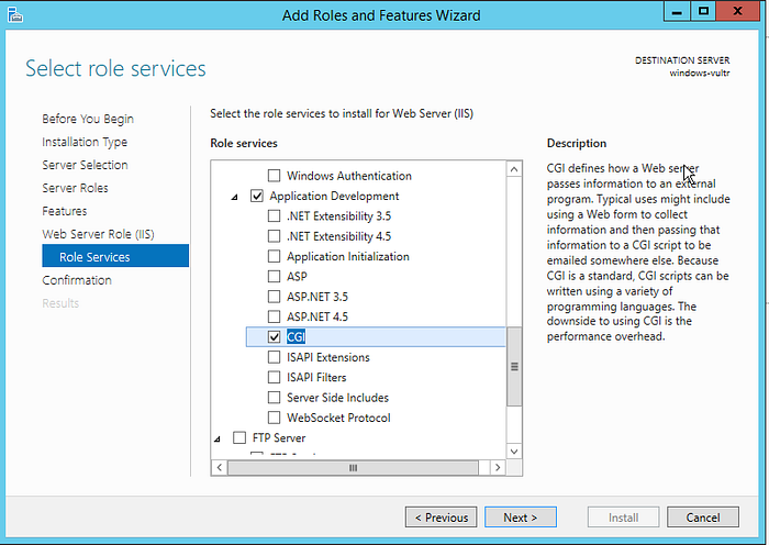 Habilitar el servicio CGI dentro de los servicios de roles del IIS.