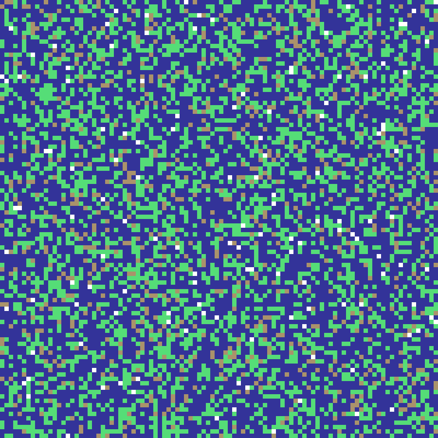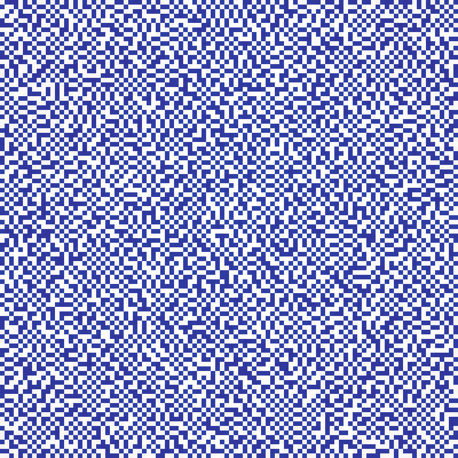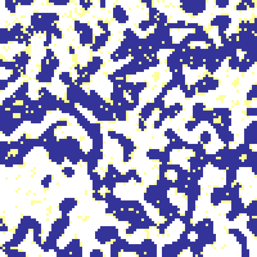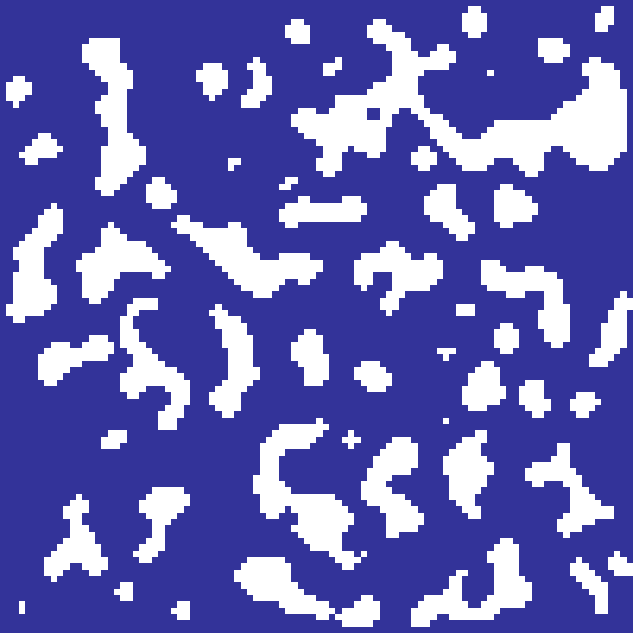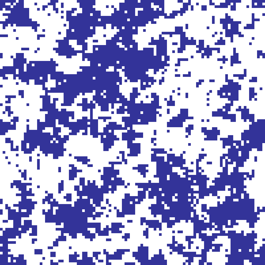 Binary Bernoulli lattice where each cell is independently set to 1 with probability p, producing binary habitat maps. The critical percolation threshold for 4-connectivity is approximately 0.593.