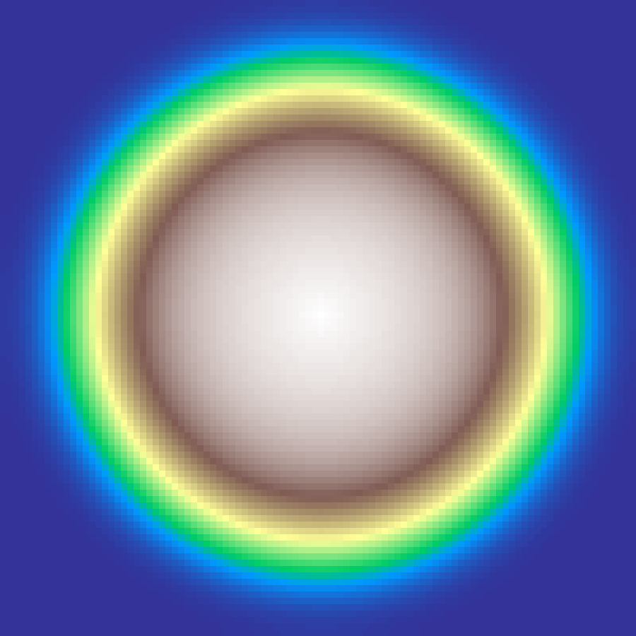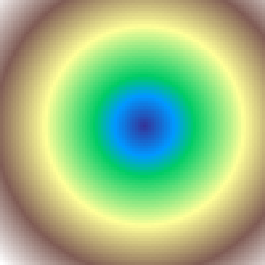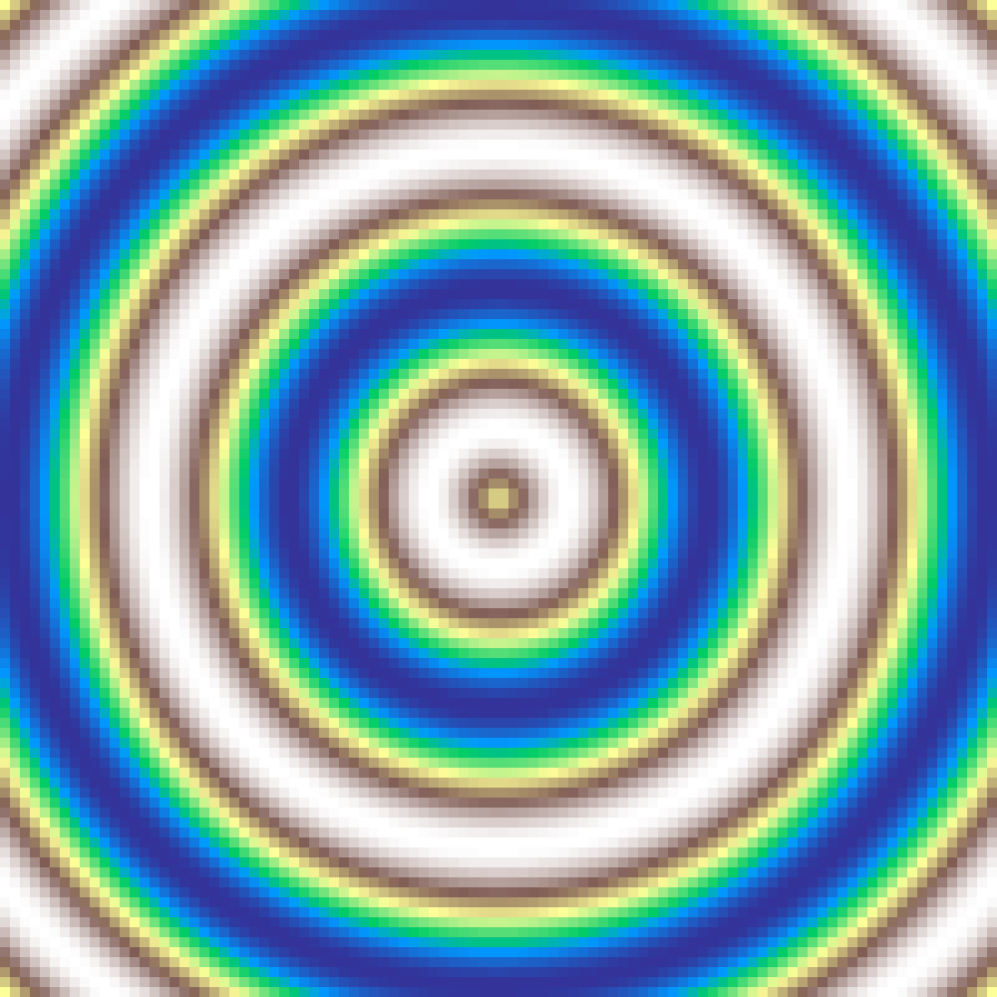 Sinusoidal rings centred at the grid midpoint. frequency controls how many oscillations span the grid radius; higher values produce tighter, more closely-spaced rings.