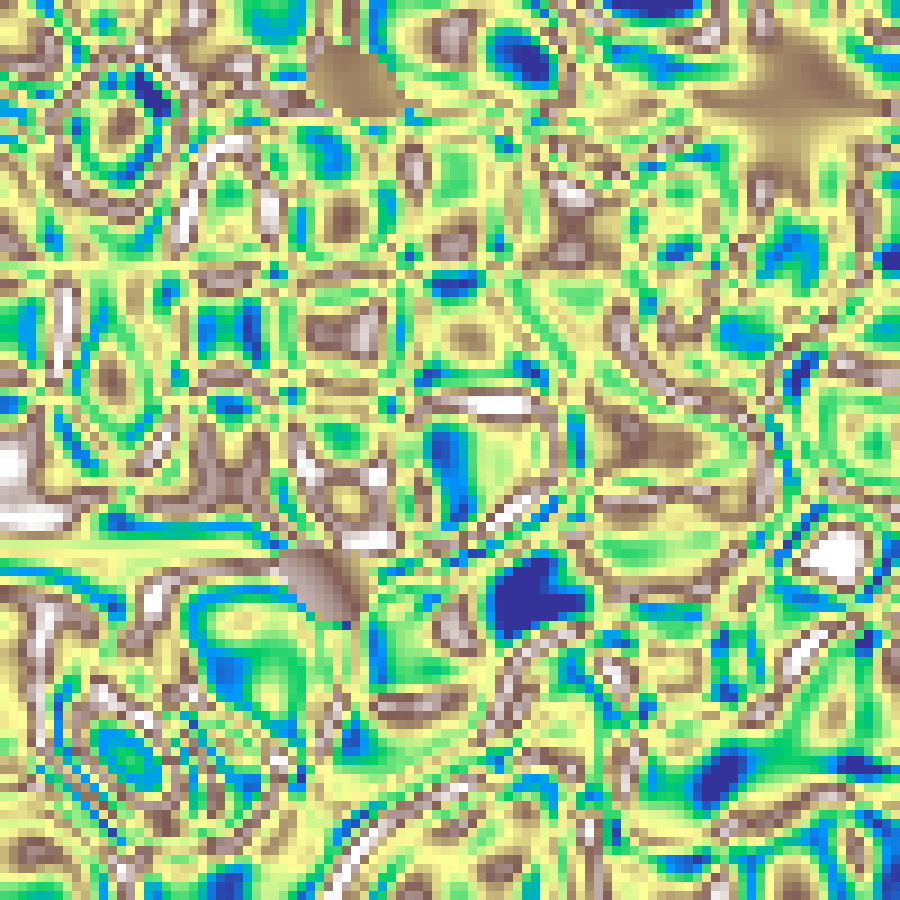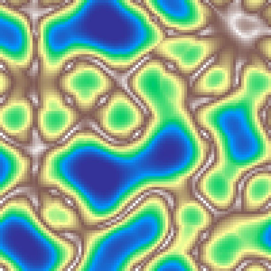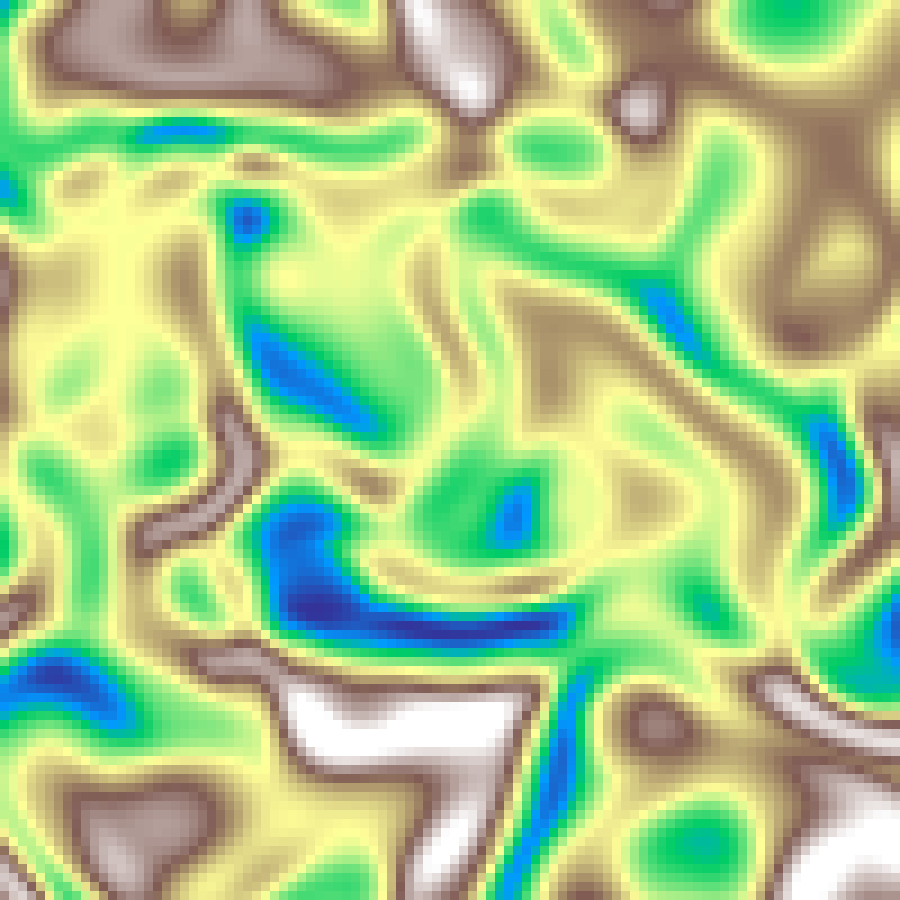 Superposes waves sinusoidal plane waves, each with a random orientation, frequency, and phase. The interference of multiple waves produces standing-wave patterns whose complexity grows with the number of waves.