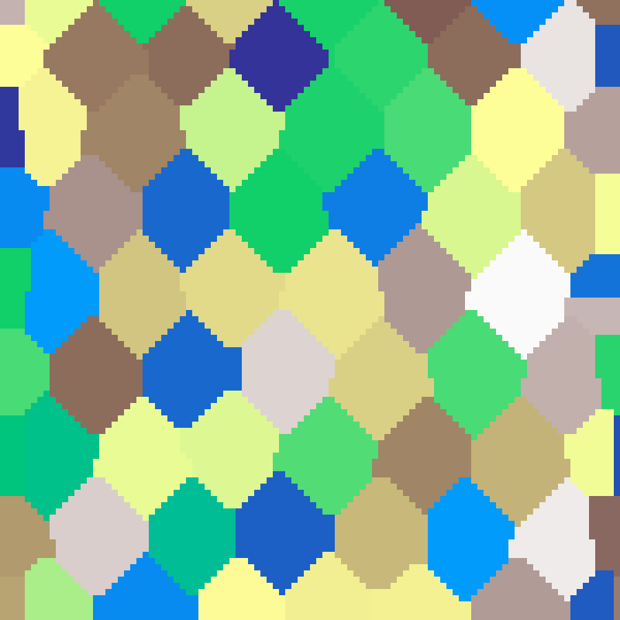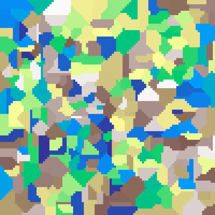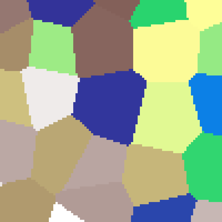 Places n labelled seed cells at random positions, then fills all remaining cells with the value of the nearest seed using nearest-neighbour interpolation.